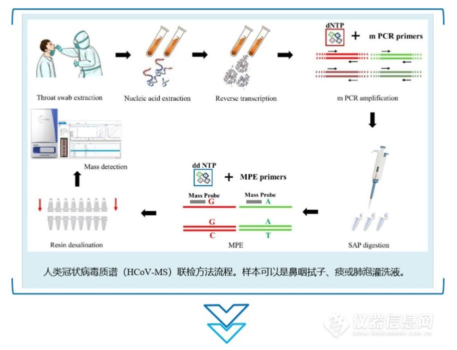 目前廣泛使用的基于聚合鏈?zhǔn)椒磻?yīng)(PCR)和免疫分析的檢測(cè)方法存在假陰性和診斷延遲的問(wèn)題。因此,迫切需要高準(zhǔn)確度、快速高通量的新冠肺炎檢測(cè)方法用于大規(guī)模人群篩查。河北師范大學(xué)、軍事醫(yī)學(xué)科學(xué)院、融智生物的研究團(tuán)隊(duì)合作發(fā)展了一種基于基質(zhì)輔助激光解吸/電離飛行時(shí)間質(zhì)譜(MALDI-TOF MS)的檢測(cè)方法。該方法使用融智生物QuanNUA核酸質(zhì)譜系統(tǒng),可同時(shí)完成7種冠狀病毒聯(lián)檢,且具備靈敏度高(只需1μL樣品)、通量高(可在30min內(nèi)快速處理384個(gè)樣品)、成本低、樣本消耗量少的特點(diǎn),同時(shí)不需要苛刻、潔凈的檢測(cè)環(huán)境,操作也相對(duì)簡(jiǎn)便。因此,該方法在大規(guī)模人群篩查、常規(guī)檢測(cè)和診斷應(yīng)用方面具有巨大潛力。相關(guān)論文已經(jīng)發(fā)表在COVID期刊上。