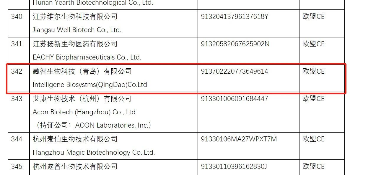 近日,融智生物QuanPLEX微流控芯片實時定量PCR儀、7項呼吸道病毒核酸聯(lián)合檢測試劑盒(微流控RT-PCR法)兩大產(chǎn)品獲得歐盟CE認證。其中,7項呼吸道病毒核酸聯(lián)合檢測試劑盒(微流控RT-PCR法)進入中國醫(yī)藥保健品進出口商會《取得國外標準認證或注冊的醫(yī)療物資生產(chǎn)企業(yè)清單》,也就是商務部醫(yī)療物資出口“白名單”,這為融智生物進入歐洲市場夯實了基礎。