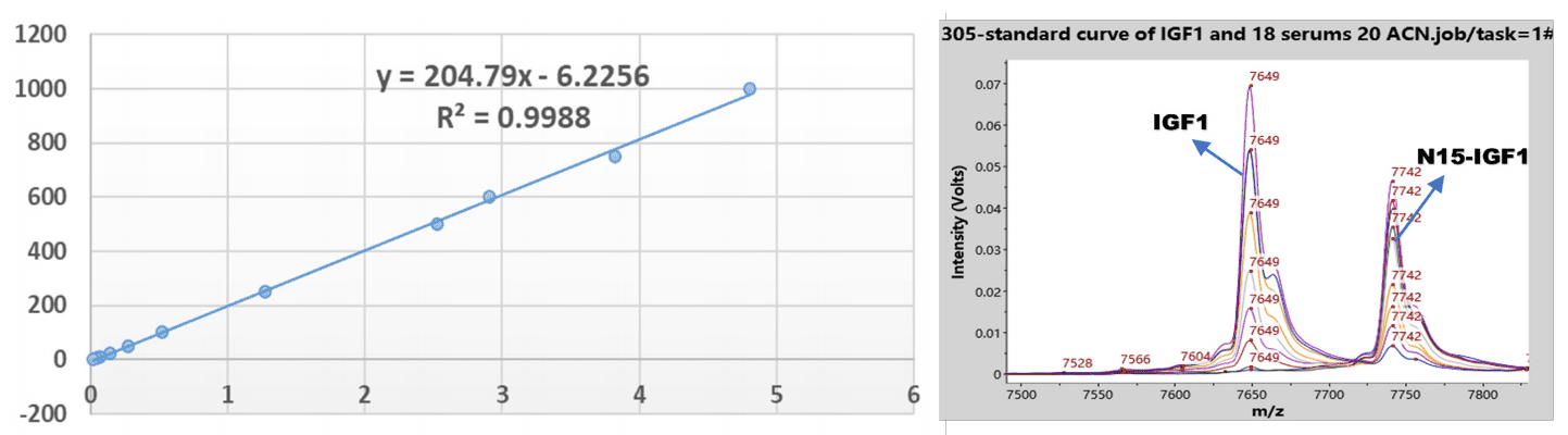 IGF-1 定量檢測標(biāo)準(zhǔn)曲線及質(zhì)譜圖
